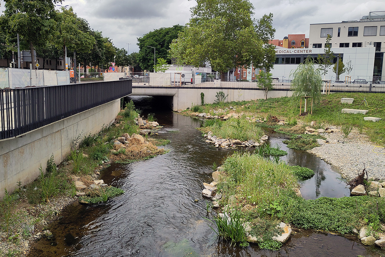 Mit modernen Simulationswerkzeugen erstellen wir hydrologische und hydraulische Modelle, die die komplexen Vorgänge der Natur digital abbilden. Diese stellen die Grundlage für Hochwassergefahrenkarten und Starkregengefahrenkarten dar, die der Visualisierung von Risiken dienen und die Grundlage für weiteres Handeln bilden. So unterstützen wir die Anpassung der Gesellschaft an Wetterextreme und an die Folgen des Klimawandels.